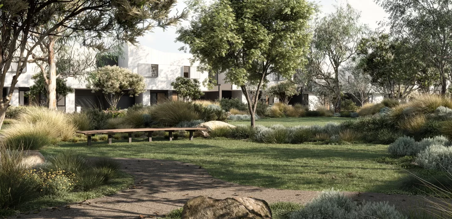 Preston Place, for example, is situated in a creekside environment and features a private Backyard Park that features native plantings and community garden beds, as well as a Nature Play space with grass mounds to run up and down, boulders to jump between, a swing, and gardens to explore. All this while being right across the road from Northland Shopping Centre!